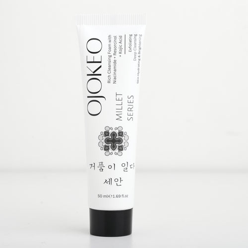 OJOKEO Millet-Powered Face Wash with Niacinamide + Resorcinol + Kojic Acid | Gently Exfoliates | Evens Skin Tone | Boosts Glow | 50 gm