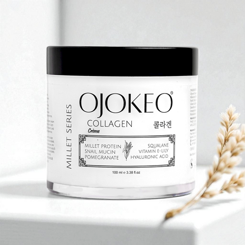 OJOKEO Millet-Powered Collagen Creme | Powerful Anti-Ageing & Hydration with Pomegranate, Snail Mucin, Squalane & Hyaluronic Acid | 100 ml