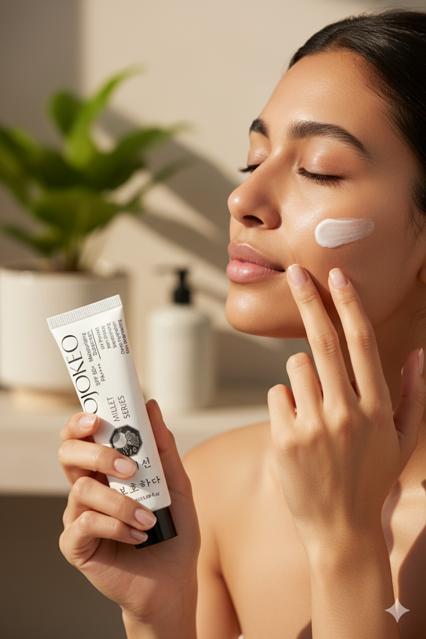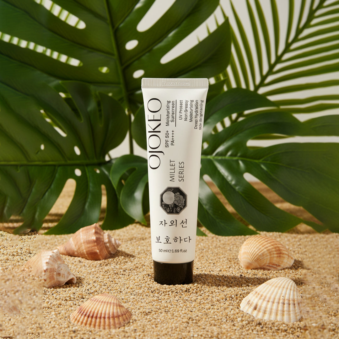 Elevate your morning routine with OJOKEO Millet SPF 50. Get comprehensive sun protection, deep hydration, and a brighter glow—all in one smart step.